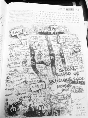尽管是随手的涂鸦,但这幅地图仍然勾起了不少同学“觅食”的兴趣。南师大新传院的周同学就告诉记者,地图上有很多平日里没有发现的美食,以后打算利用周末和小伙伴一起把图上的餐厅都光顾一遍。