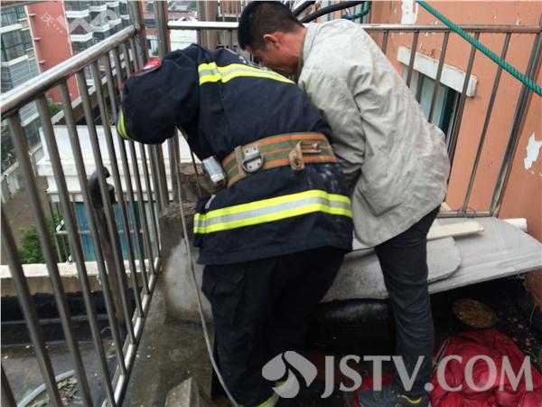 消防官兵到场后发现,该楼是一栋6层楼房,小狗是6楼户主的宠物,可能小狗玩耍时不慎从楼顶烟筒口掉下去,被卡在3到4楼之间。