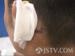 张某的颈部被抓伤,左耳被划伤三厘米,缝了五针,目前,警方正对伤势进行法律鉴定,将对此事做进一步调查处理。