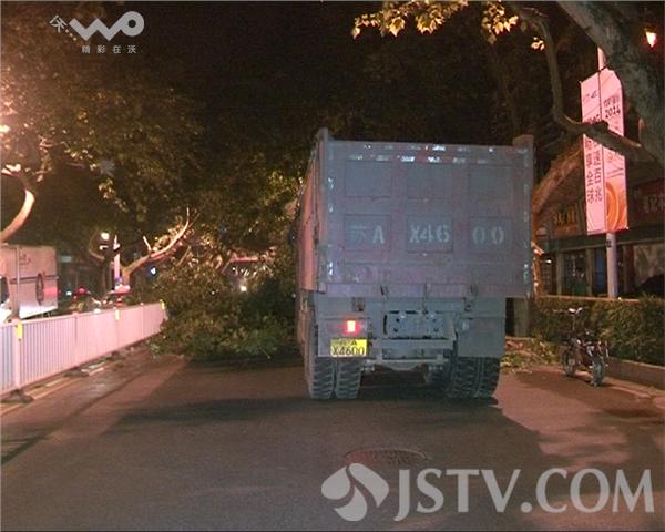 今天凌晨两点左右,南京珠江路上,一辆渣土车为避让反道而来的助力车,急打方向盘,结果一头撞到了路边榕树上,一根十多米长的树杈被撞断,横在路中央。。。一些车辆为了节省时间,冒险选择 反道行驶。但也有一些司机自发停下车,将挡道的树枝搬离,清 理出一股车道,方便车辆行驶。