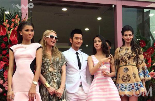 最近,黄教主又再度出手,进军甜品事业!今天下午,由他投资经营的某全球知名品牌奶昔店在上海五角场万达广场开业,晓明哥不但携手Angelababy高调出场秀恩爱,更邀请到了帕丽斯·希尔顿等一票国际友人前来捧场。看来,“闹太套”的英文现在是大有进步呐!