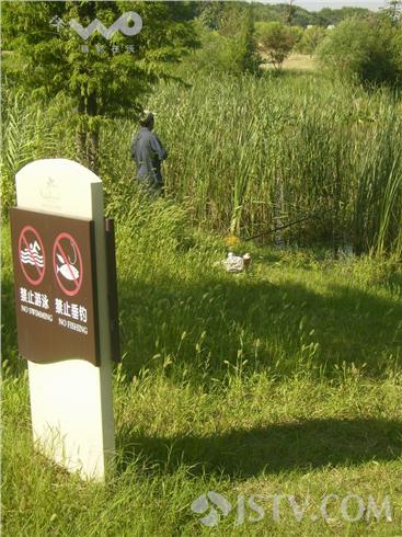 在南京滨江幕燕风景区内一处小水库边,竖立有数块“禁止游泳、禁止垂钓”的警示牌,但仍有人公然在此垂钓、野泳,禁钓禁泳警示形同虚设。