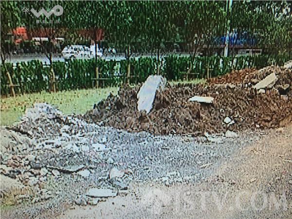 同样在今年4月,有市民发现南京东阳坊立交桥南侧的绿化带里,暗藏着大量建筑垃圾。对此玄武湖街道城管中队不但不清理,反而覆盖上黄土。而在这些垃圾山下,埋着南京港华燃气和南京空港油料公司的输油管道。我们现在再次来到现场,却依旧看到很多的渣土和建筑垃圾,由于时间过了很长时间,原本用来覆盖黄土的树叶已经枯萎。