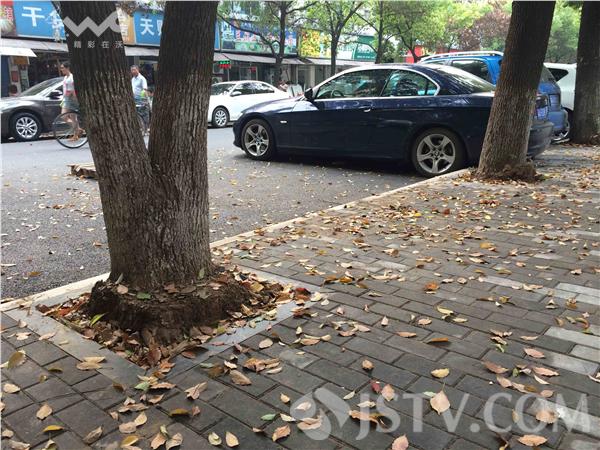 记者随后赶到居民所指的龙江花园城宝地园与腾飞园之间的龙腾街,确实发现街道两旁20余棵香樟行道树中,夹杂着不少整棵树叶已经完全变成暗红色的树木,衰败的树叶落了一地。记者注意到,这条街的路面以及人行道明显是最近刚刚被翻新过,一些香樟树的树根部位还没有完全处理好。顺着龙腾街向北步行至与龙园北路交叉口附近,道路出新的工作才刚进展到将旧路面挖掉的程度,几棵行道树的树根更是直接裸露出地面,很难想象之前工人在施工时是否掌握好了掘地的分寸。