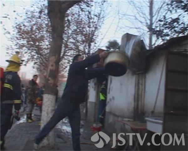 到达现场发现,大火已经被市民合力扑灭,一个煤气罐也已被抢了出来,据大排档主人王某说,当时自己去买菜了,锅里烧着菜,让女儿在旁边看着,可是女儿忘记了,没想到锅里菜烧干了,接着就把边上的油桶引着了,随后大火立即烧了起来。由于厨房里面有太多油,所以起火燃烧得很快,幸亏邻居冒着大火将煤气罐抢了出来,并一起用脸盆舀水将大火拍灭,否则后果不堪设想。现在屋里家电已全给烧毁,所有的存菜也已报销,店主无奈对此只得摇头叹息。巧在此时,旁边的房顶又再次起火,现场消防官兵立即用水枪将起火再次扑灭。