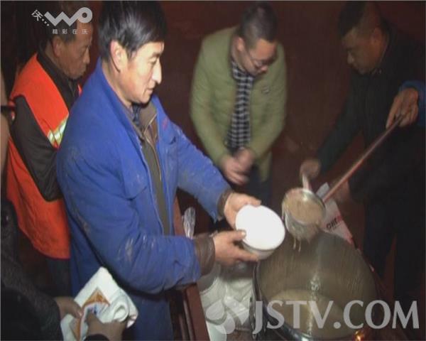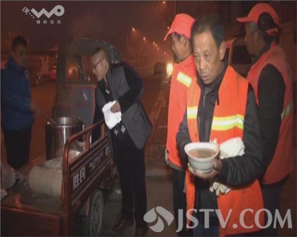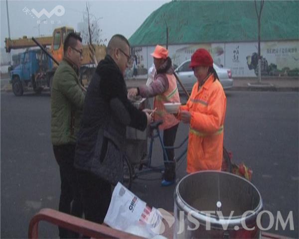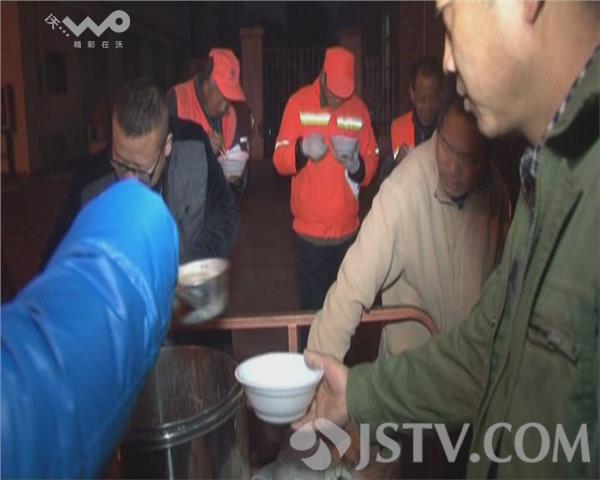为了让环卫工人喝上一碗热气腾腾的腊八粥,今天凌晨4点,淮安市经济开发区一家饭店老板许先生在马路边为路面保洁的环卫工免费赠送腊八粥,一碗热粥让50多名环卫师傅们顿感暖意融融。