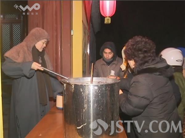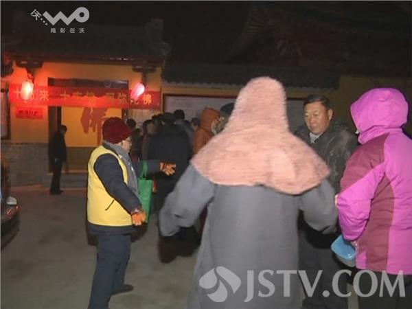 1月27日,今天凌晨3点多钟,记者来到徐州市竹林寺,很多市民陆陆续续的前来寺庙讨粥。