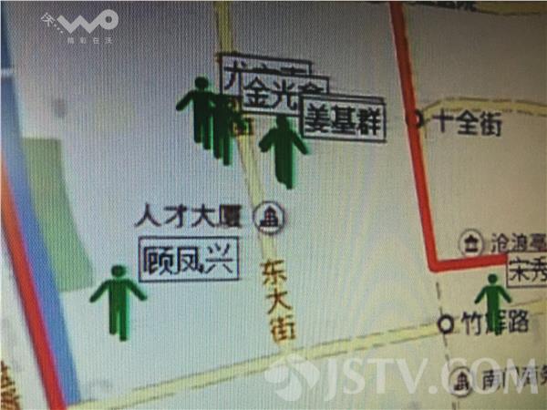 电脑屏幕上这一个个绿色人形标志,就是路面上市容管理员的位置。一旦发现有无证摊贩,后台管理人员会呼叫附近市容管理员前去教育。目前,包括干将路、东环路等道路在内,市区共有47条道路实行'摆摊即查'制,目前共纠处占道经营4646处、取缔无证摊点2890个。