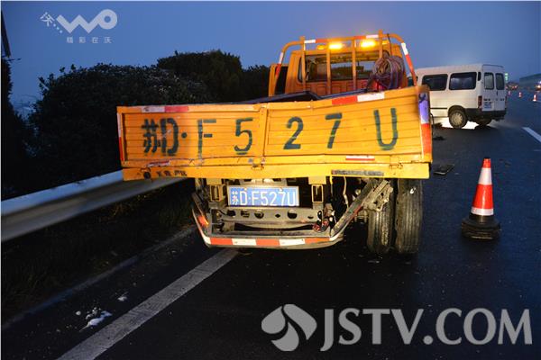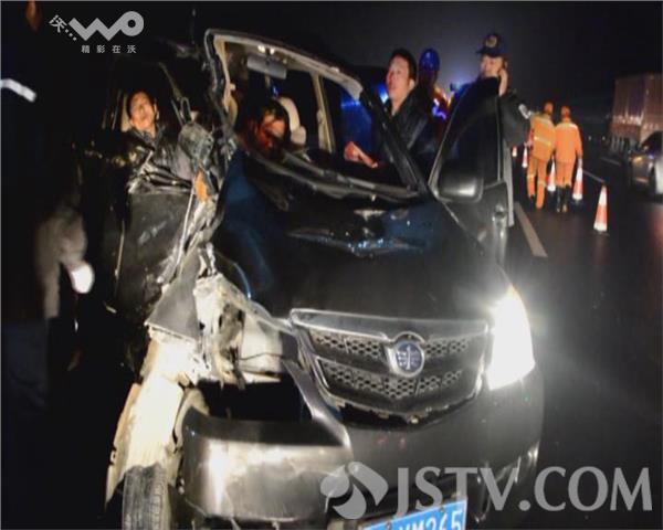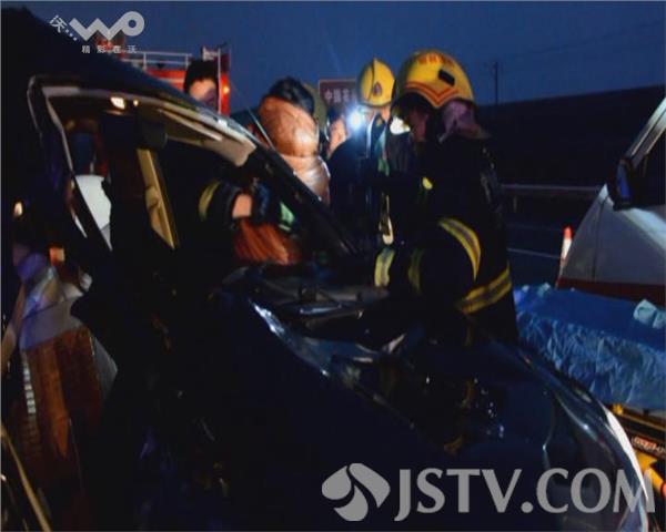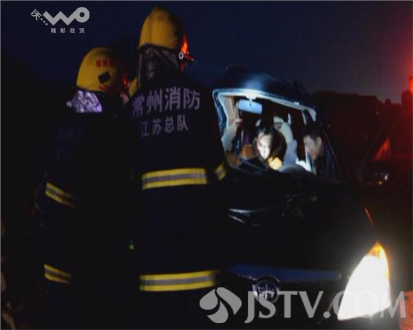 1月30日上午6点左右,常州境内沪宁高速往南京方向184公里处发生车祸,一辆黑色的面包车与一辆高速防护车相撞,面包车上有4名男子被困,另有2名高速工作人员被撞。常州消防泰山路中队接警后迅速出动赶赴现场进行救援。