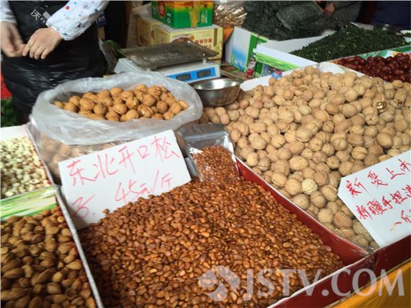 记者在不少摊位都在卖一种叫蓝莓果干的零食。一位摊主介绍说,这都是风干的,降血压降血脂,一袋一斤25元。当记者询问一摊主,这个是什么品种,怎么在这个市场上有那么多种,都不一样啊?摊主回答说,这都是蓝莓,关于不一样我也不清楚,可能是商业秘密。