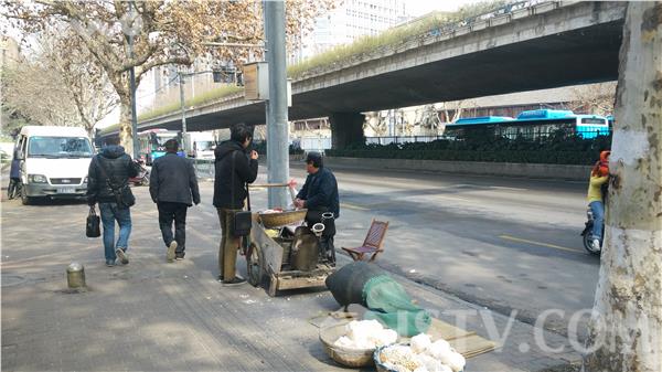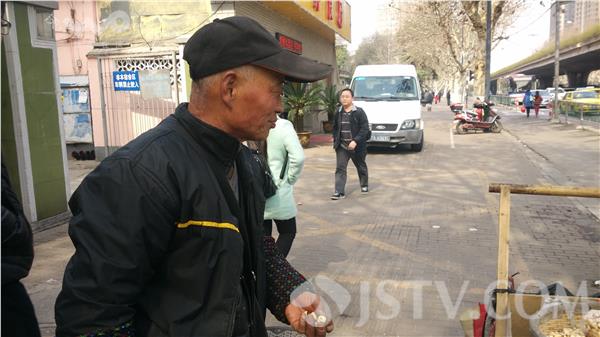 费师傅来自兴化,和老伴一起在南京租了间小屋子,走街串巷卖炒米。他今年65岁,1976年从部队退伍后就一直在做炸炒米的活计,推个小车,摆两个篮子,一干是40年。他服役后回乡,帮人打工受过伤,腿部留下残疾,现在每年只能拿到3000元的低保补贴,为了生活,只能在街边凭着手艺赚点小钱,冬天吃的人多些,但夏天就基本没什么生意了。