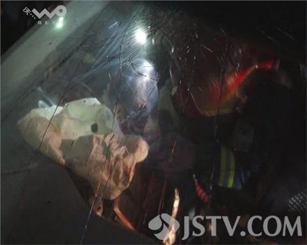 22时15分,消防官兵赶到事故现场,经侦查发现,一辆黑色的小轿将绿化带撞开2米多长的口子后,直接冲到绿化带顶部,由于巨大的撞击小轿车损毁严重,地上洒落到处都是撞碎的汽车零部件,两名人员被困在驾驶室和副驾驶上,而且副驾驶上的被困人员受伤严重,满脸都是血,并且不断的嚎叫喊腿疼,消防官兵立即展开救援,利用液压扩张器等器材对被困者被卡位置进行破拆,由于操作空间狭小,给救援工作带来了一定的难度,消防官兵一边寻找破拆的突破口一边与被困者交流稳住情绪。在扩张器材的作用下,卡住被困者腿部的位置金属架子也被扩张开来,在大家的帮助下,副驾驶被困者被成功救出,立即抬上120救护车送往医院紧急救治。而驾驶员受伤较轻,在大家的帮助下,自己从车里出来了并无大碍。