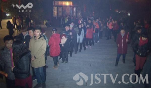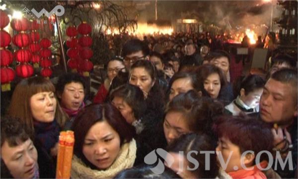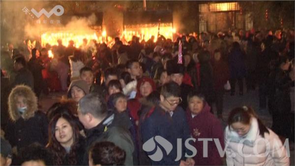 许多市民刚吃完年夜饭就赶来慈云寺排队等候撞钟,前来撞钟的淮安市民早早的排起了长龙,队伍从大雄宝殿的门前一直排到寺庙门前。广场上许多市民烧着高香,跪拜佛像、为亲朋好友祈福等。