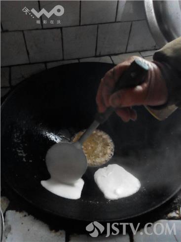 米饼是用大米做成的,就早早地把米淘洗干净,磨成米粉,晚上把米粉糊成面,放到热灶台上微微发酵。清晨,妈妈把铁锅烧热,先把清油沿着锅的四周淋一圈儿,使得满锅壁都有一层薄薄的油。然后拿起勺子盛上米饼料,贴着锅沿往下流,碗口大的饼就成了饼,油滋啦啦地响着,等一会面熟了。一张张油滋滋带黄褐色的米饼就出锅了,飘着香气,拿着热乎的米饼迫不及待地放进嘴里,津津有味地吃起来。甜黏适合,香软可口,弹性十足,那简直就是世界上最好的美味了。