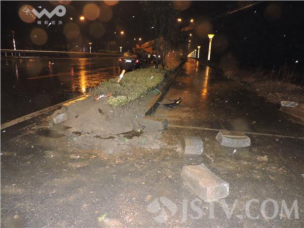 记者赶到现场时受伤人员被120救走,交警也勘查结束,在等吊车过来,记者看到一辆油槽车停在路北车头向西,在路南的河里看到一辆轿车,路南边人行道上有破碎的塑料片,路牙石头也翻了几块出来,有几位男子从河里车上后备箱里的,把几袋大米在往上面一辆车上搬。轿车前面发动机盖也鼓起,左侧的护板也飞起来了,前二只轮胎也被撞坏,前保险杠全部撞坏,前二边的门也撞了变形,驾驶室二只气襄全部打开,后挡风玻璃以破碎,还好河里的水只有十公分左右,不然后果不堪设想。轿车驾驶向记者介绍,是油槽车由南向北拐弯向西,由于雨天路滑刹车不及,撞到油槽车尾部然后又向南撞到路牙才掉到河里。