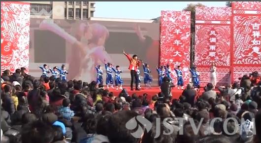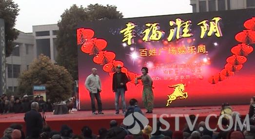 “幸福淮阴”——2015年春节百姓广场娱乐周活动在黄河广场如火如荼地举行,让浓浓的年味飘荡在淮阴的上空。在广场中央的舞台上,淮阴区文化工作者们载歌载舞,为市民们表演精彩节目,这些节目当中既有淮阴区传统的文艺表演,也有不少专门为庆贺羊年到来而专门编排的节目,节目内容充满着对美好生活的热爱,对新年前景的向往,同时也着力展现发生在大家身边的新人新事,台下的观众对精彩的节目不时报以热烈的掌声,对衣着单薄的演员们带来浓浓暖意。