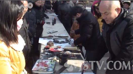在广场的另一端还有传统民间手工艺品展销,书画家现场为市民挥毫泼墨。给市民们来到了惊喜的同时,也让年味更加浓郁。