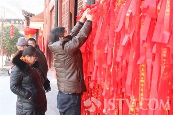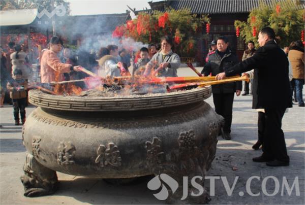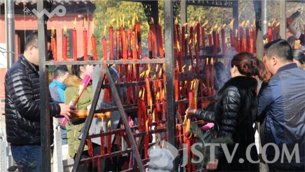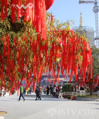 今天上午9点,在淮安市慈云禅寺看到,近千名淮安市民一大早就赶来烧高香为家人祈福迎财神爷。市民们手捧高香默默祈福,炉台火苗旺盛象征新年红红火火,树上系满了市民的美好祝福。有许多市民都是特意赶来祈福迎财神的,经营商铺的刘女士和朋友也是一早赶到寺庙想为自己和家人讨个好彩头。