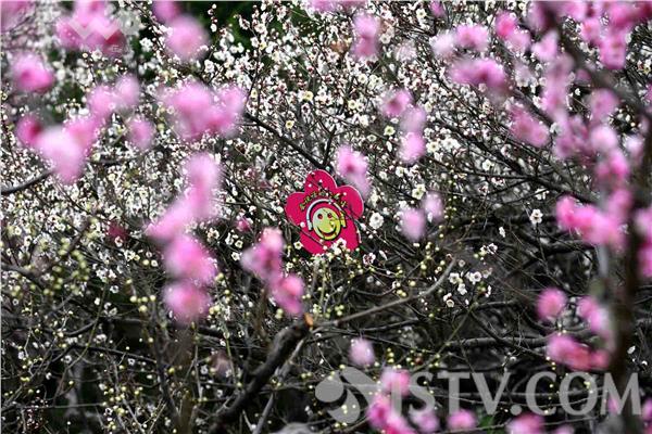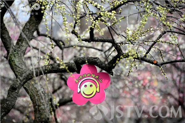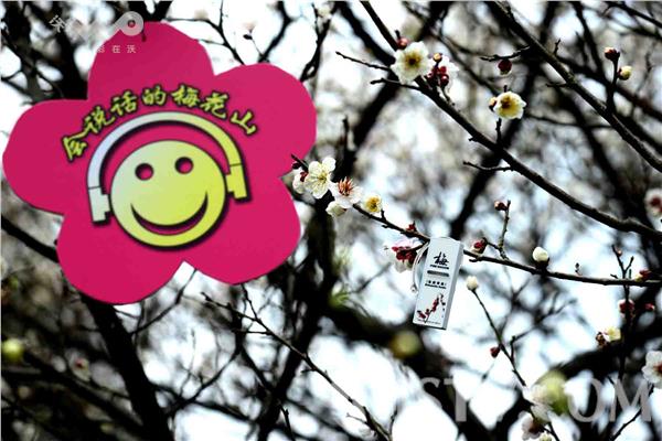客动态播报花情外,还推出“会说话的梅花山”自助语音讲解导览项目,为游客自助讲解各类特色梅花的花名、特性等,深受游客喜爱。“会说话的梅花山”自助语音讲解导览系统包括悬挂在指定梅花树枝上且印有“会说话的梅花山”字样的标识牌、固定在对应梅花树干上的电子发射器,以及套挂在游客耳朵上的接收器三部分组成,游客在指定的赏梅路线上游览时,进入电子发射器有效范围内,即可接收指定的语音讲解,“游客们可以边听边游览”美景。