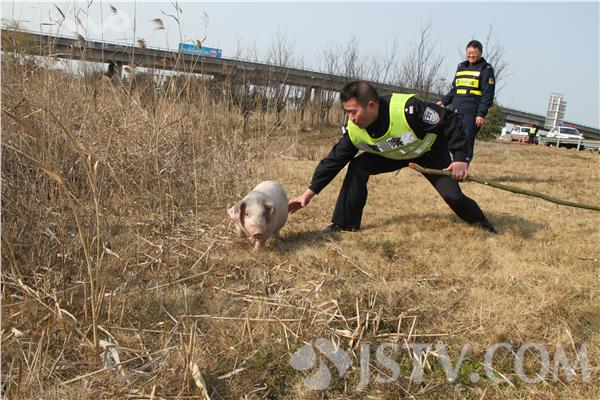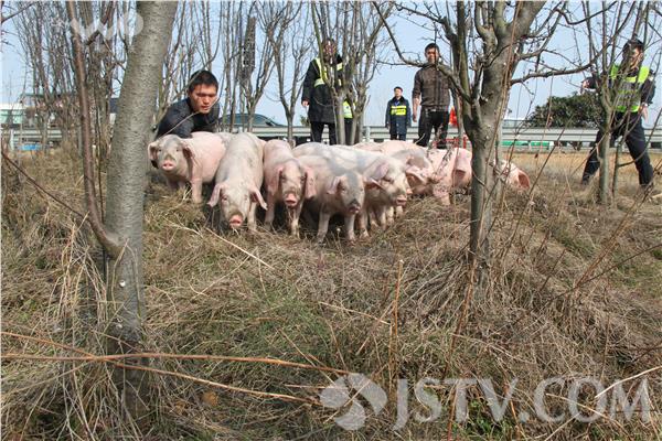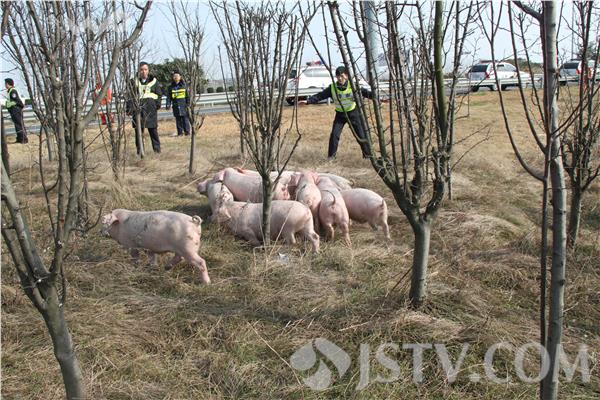 盐城高速一大队接到警情后,全体人员全部紧急出动,与路政、道管人员、附近的村民协作围抓分成三组,由成如斌副大队长现场指挥,将散落一地的猪驱离到隔离带下方,决不能让一头猪冲上高速,但一猪高上高速后果不堪设想,另外两个组协助车主将猪全部抓回车猪笼里,经过一个多小时的紧急救援,78头猪全部归笼。由于高速交警行动快,指挥得力,避免了可能发生的交通事故。面对失而复得的猪,车主激动得说不出话来,连声谢谢。
