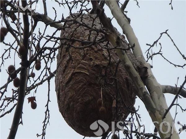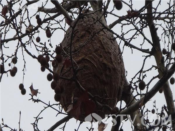 这个蜂窝大约60厘米,表面花纹都呈规则地密集排列着无数贝壳,很是奇特。“以前梧桐树上有茂密树叶,当时未注意到,没想到一个寒假过来,今日送小孩上幼儿园,居然看见悬挂了两个篮球大的马蜂窝,真让人担心!”周围居民王女士称。