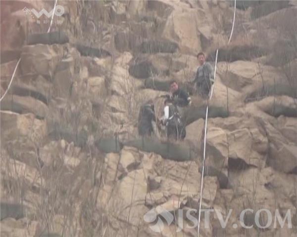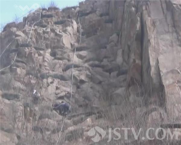 昨天下午1点多钟,在苏州市苏锡230省道东侧的一处无名荒山上,一名男子被困在近百米高的悬崖峭壁上,急得大喊大叫。