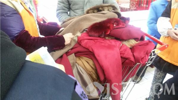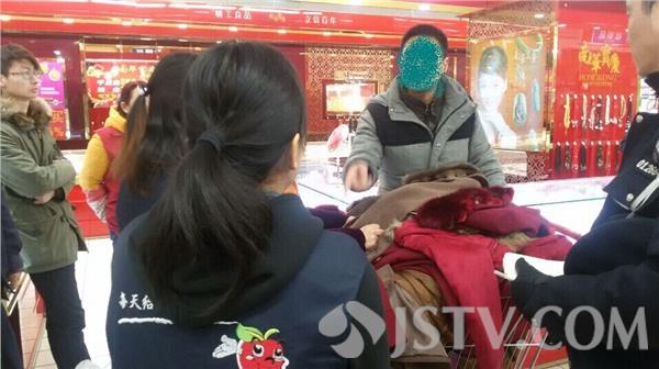 3月7日下午16:30分左右,南京江东北路一超市,市民王先生报警,称在超市二楼衣服柜买了14件女式外衣,准备到老家去卖,到收银台时,几名超市员工竟拦着不让付钱买,报警求助,民警随后赶至现场。