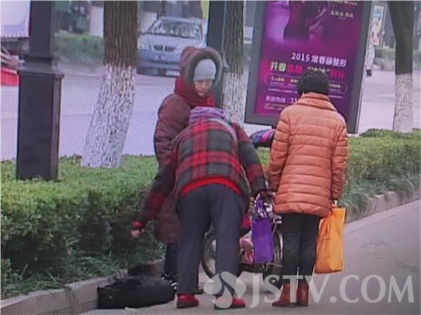上午,记者在苏州竹辉路上采访时,突然发现在非机动车道上,一位阿婆在车流中,守着一个遗落在地上的黑色手提包,没多久,更多的市民围了上来,自发形成了一个保护圈,阿婆怕骑车的人压到包,把手提包提到了路边。