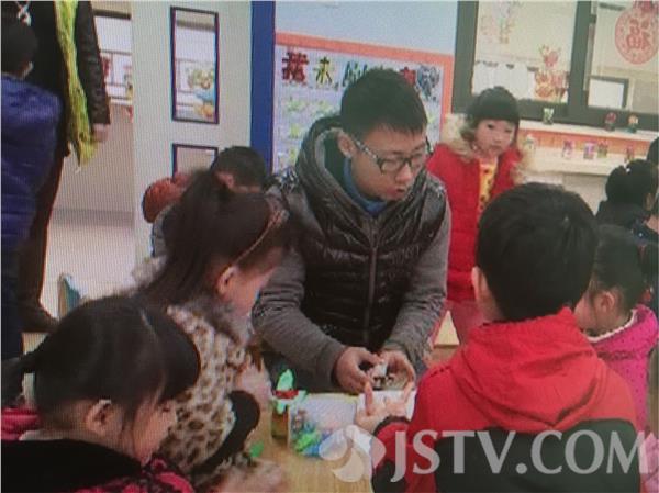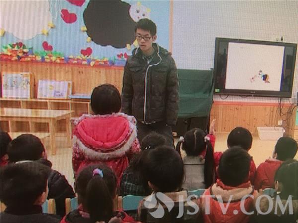 这位正在无锡侨谊幼儿园实习的男教师叫谢昕,他于2010年初中毕业考入苏州高等幼儿师范学校五年制大专,是我省首批免费男幼师。