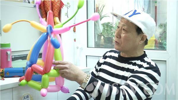 每周三下午,他都要到北京市儿童医院给孩子们表演。虽然表演两点才开始,但刘进军总是提前两个小时到,早早地为小朋友们准备礼物。形态各异的气球,看起来简单,学起来,可要花不少心思。有时在路上看到一个可爱的气球,他回家就自己琢磨半天,还在这个基础上创新。从最开始做简单地小猫、小狗,到现在,刘进军已经学会一百多种气球的编法。
