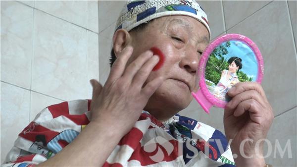 化妆时,也可以直接画上一个红鼻子,但老人家嫌效果不够好,还是忍着疼用双面胶贴上兵乓球做的红鼻子。