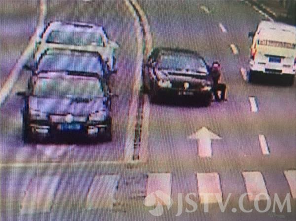 镇江市润州交警大队民警介绍,这个和他有经济纠纷的当事人,扒在车上。但债务人任某却开动汽车,一直往前走,当时车速很快,孙先生已经下不来了。可以从监控清楚地看到,他的前方有很多的车子,他依然闯红灯。