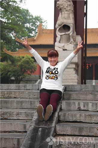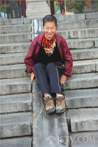 已是年过半百的王先生夫妇是地道的南京人,他们青梅竹马,打小在王府大街长大,可以说朝天宫就是他们的家门口。“滑滑梯啊滑滑梯,你先我后别着急,上去好象爬高山,下来好象坐飞机。”转眼间半个世纪过去了,唱起儿时的童谣他们还是那么的天真浪漫。王先生说:棂星门前的台阶虽然只有短短的十一、二级,但小时候感觉好高。每天上学放学他们都要经过这里,滑石梯是必做的“功课”,也是他们一天中最快乐的时光。从小到大,要说磨破过多少条裤裆那是数也数不清。