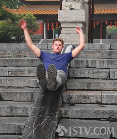 他们的举动,引来了无数游客加入了滑滑梯的行列。这“石滑梯”的游戏不仅孩子们喜欢,年长者和老外们也都喜欢。