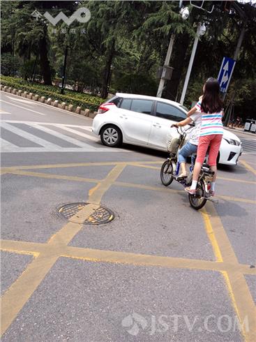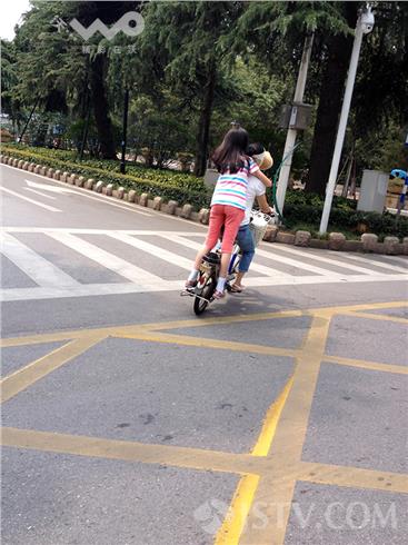 近日临近放学时,荔枝新闻网友在南京市政府门前,就看到一位女同学,站在妈妈的电动车后座踏板上,由于是位高年级学生,她身高和体重都已接近成人,这样站,使整个车子的重心增高,稳定性下降,驾车人控车难度大大增加,整个车开始摇摇晃晃,非常危险。