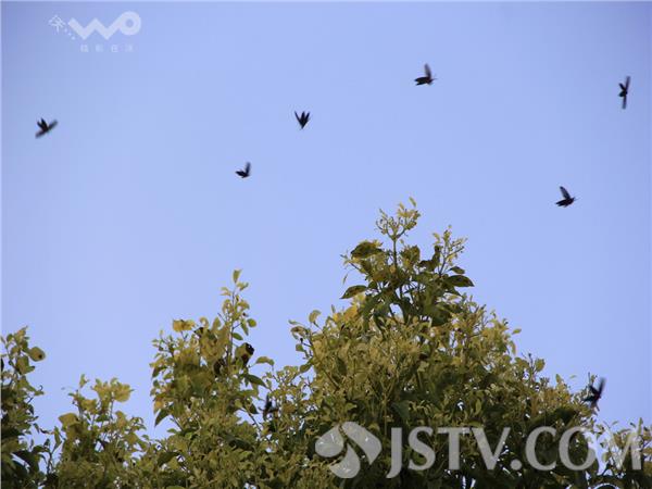 今天上午,市民武先生经过浦囗滨江外滩北堡段时,发现香樟树绿化带上有很多“黑蝴蝶,最多的一棵树上,有数百只‘黑蝴蝶’飞舞,还有的歇在树叶上面交配。”