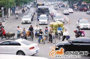 电动自行车闯红灯 本报记者 孙井贤 摄