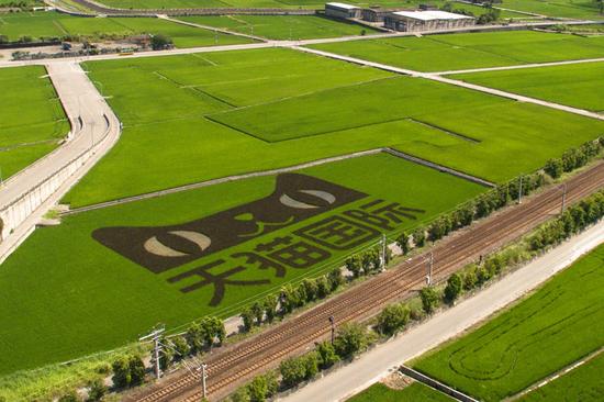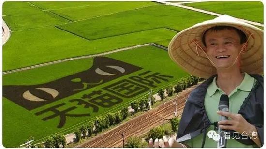 在一望无际的台湾东部,除了美丽海景与骑单车,最近还能看到一幕景象:一片0.6公顷稻田,竟然出现了巨大的天猫LOGO,底下还有简体字“天猫国际”字样。
