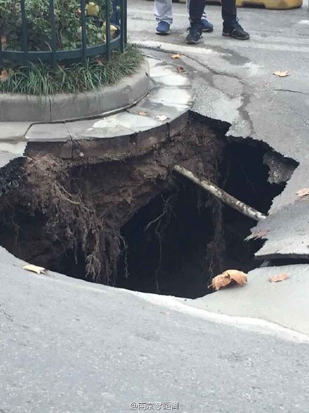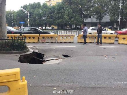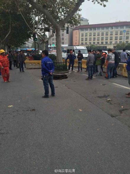 【路面塌陷 救护车被卡】今天下午两点左右,南京九华饭店门口路面突然出现约三四平方米的塌陷。一辆行驶中的救护车被卡……市政、园林等多部门赶到现场处理,并设置围挡,调来混凝土回填。塌陷原因正在调查。