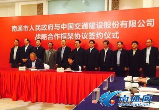 10月30日上午,南通市政府与中国交通建设股份有限公司签署“南通通州湾及基础设施综合开发投资合作框架协议”,标志着中交建与南通及通州湾更广领域、更高层次、更大规模的交流合作全面开启。中交建总裁陈奋健,市委副书记、市长张国华等出席签约仪式并讲话。