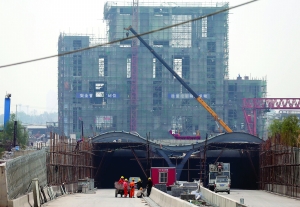 从江北入口出来后,现代快报记者又来到了江南的南北两线的入口,发现施工进度和江北类似。