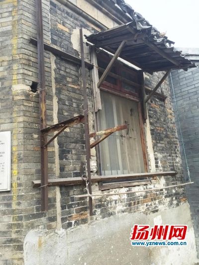 而在刘氏庭园入口,门槛早已只剩下半截,雕龙画凤的门上方已经残缺不全。更让人觉得不可思议的是,在刘氏庭园里,多处小门、窗户为后来私自开凿。而与这些私自开凿的门窗为邻的,竟然是“扬州市文物保护单位 刘氏庭园”等字样。
