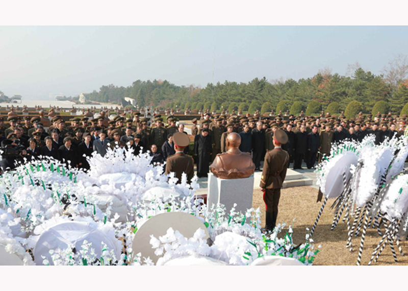据朝鲜劳动党机关报《劳动新闻》12日报道,朝鲜11日在平壤为7日病故的人民军元帅李乙雪举行国葬。自任治丧委员长的朝鲜国防委第一委员长金正恩率众出席葬礼。图片来源:视觉中国