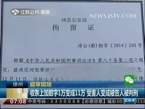 徐州市沛县市民陈某为了办高额信用卡,听信王某的话,花了12000元买了一张水床,不过王某拿到钱就消失了,为了让王某退钱,陈某想出了一个高招。那就是在王某写的12000元的收条上,加了一笔,变成了112000元。也就是这一笔,陈某从受害人变成了被告人,被依法判刑。