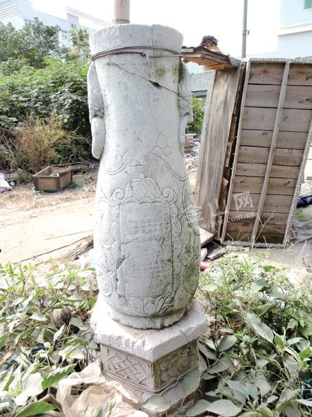 马阿林告诉笔者,听闻大港华阳观504岁石雕花瓶被盗,他便与镇江市文物保护志愿者网友“昭明文选”,于日前去实地了解该观明正德六年(公元1511年)石雕花瓶被盗一事。