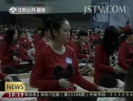 近日,南通体育会展中心里举行了一场孕动会,近千名孕妇一起练瑜伽。