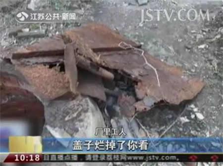 据工人介绍,虽然这口窨井已废弃多年,但里面还积有污水,而且井盖都已经严重生锈腐蚀了。
