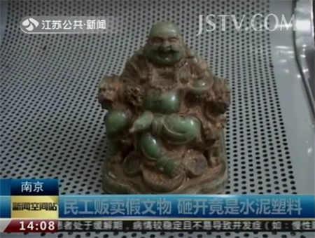 民警要求老人砸开假玉佛,这才看到了水泥和铁块倒装在假玉佛侧内,而包装在外的是绿色塑料,这就是一个十足的假货。民警对老人进行批评教育,老人表示,自己再也不销售假冒伪劣的事情。
