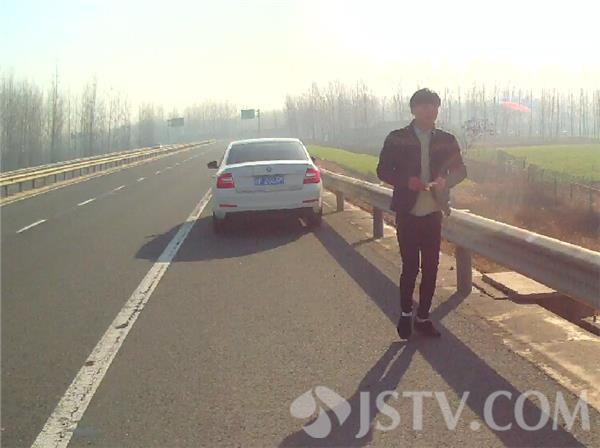 民警到达现场后发现,一辆白色轿车停在连徐高速转入京沪高速的匝道口应急车道上,车的前保险杠严重变形,驾驶员小王站在车后,见到民警到来赶忙迎上去。驾驶员小王告诉民警,当时他车速不快,沿着连徐高速正常行驶,就快要进入京沪高速时候突然听到“咣当”一声,小王以为撞人了,颤颤巍巍下车查看,发现车前保险杠装上的是一只羊,羊已经被撞死躺在地上。