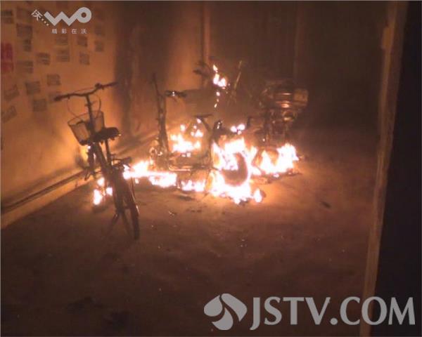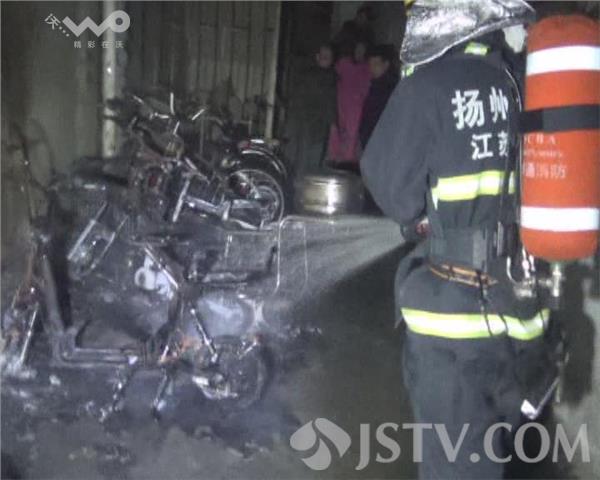 12月27日晚上23点左右,扬州市运河西路附近一小区内,一楼道口停放的一排电动车突然起火,而离奇的是这些电动车都没有电瓶。当地公安消防部门接到报警,迅速赶赴现场扑救。